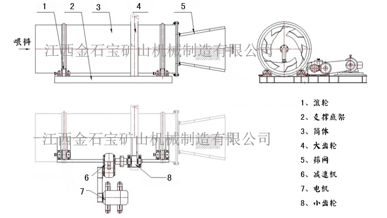 2.长形的洗矿筒体使得物料在内的逗留时间长,充分且有力地将物料完全分散。
