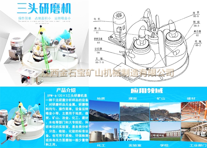 主要由三套磨头、离合器、研钵支座及定位器等总装组成。